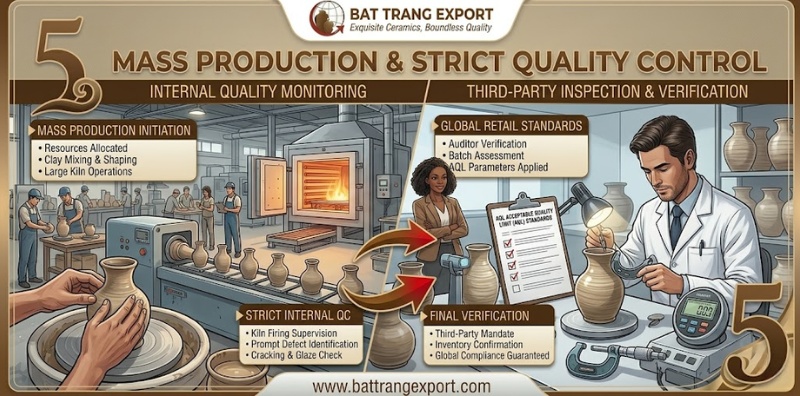 During and after production, rigorous quality control is mandatory. Before authorizing the final shipment, you must ensure that your products strictly comply with the global quality standards for ceramic exports, particularly regarding lead and cadmium limits required by US FDA or EU regulations.