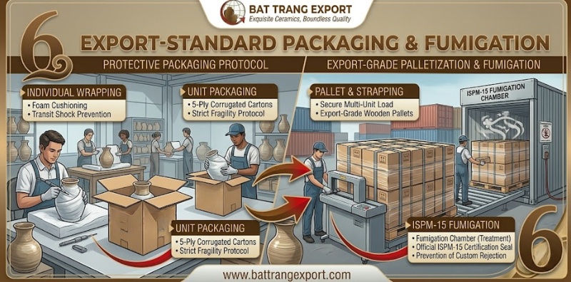 Implementing a standardized workflow at Bat Trang Export systematically eliminates supply chain risks while maintaining rigorous cost control. Consequently, this professional approach ensures that large-scale pottery shipments arrive safely at their destination ports without unforeseen delays.