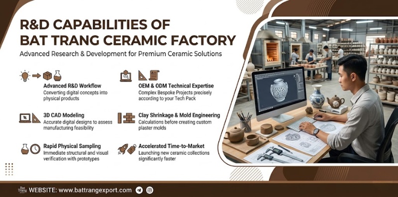 In conclusion, securing a stable international supply chain demands a manufacturing partner equipped with massive industrial scale, advanced technology, and a rigorously trained workforce. Bat Trang Ceramic Factory perfectly integrates these critical operational elements to execute your highest-volume commercial orders flawlessly. Contact our expert procurement team today to schedule a comprehensive virtual factory tour or to request a highly competitive wholesale quotation!