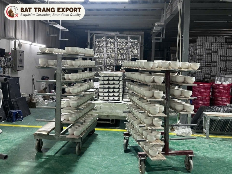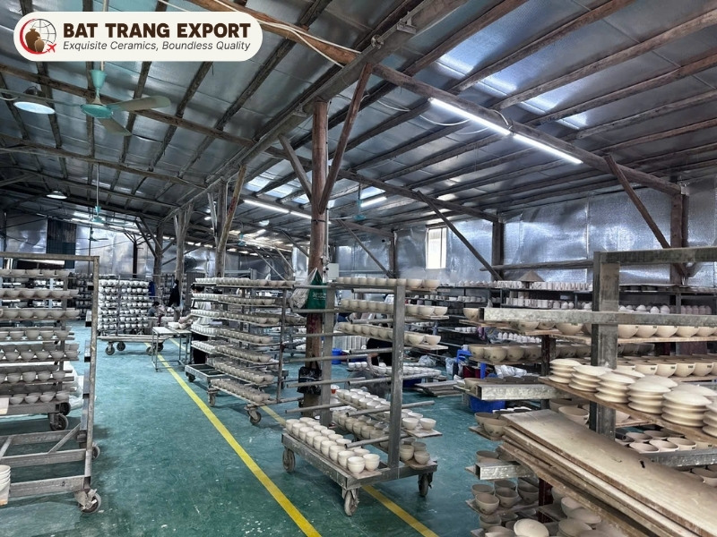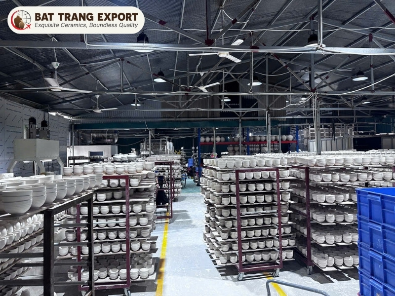 Bat Trang Ceramic Factory is equipped to fulfill large-scale international B2B procurement demands. Operating a 500-square-meter manufacturing facility, our production capacity consistently reaches 50,000 to 100,000 ceramic units monthly.