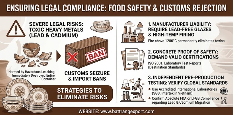 Severe legal risks emerge when imported ceramic tableware is identified with hazardous heavy metal leaching, particularly lead or cadmium. If US or EU customs authorities detect toxic contamination, they will immediately destroy the entire container and impose strict import bans.