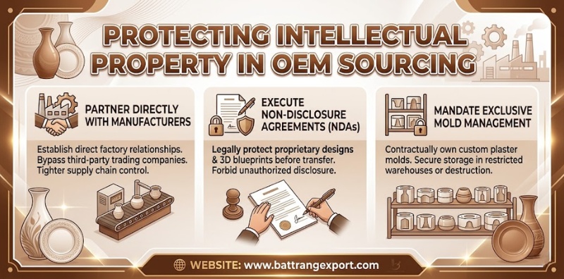 Commercial IP vulnerabilities exclusively arise when clients bypass factory blanks and choose to invest heavily in exclusive R&D. By thoroughly understanding the distinct risk profiles associated with OEM vs. ODM in ceramic manufacturing, buyers can implement proactive legal barriers to prevent unauthorized factories from selling their bespoke, custom-sculpted designs to direct retail competitors.